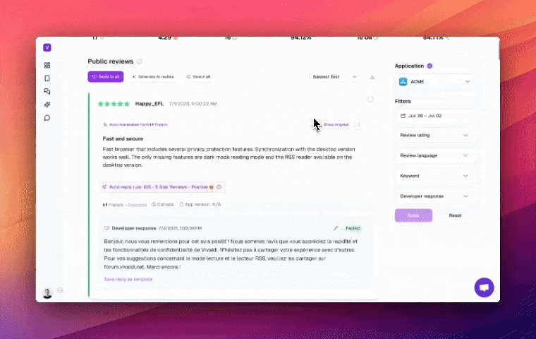Managing app reviews in different languages just got way easier in AppReply.co.
