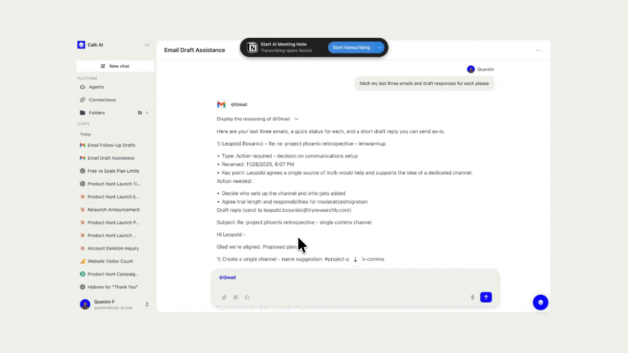 Our agents have access to the integrations you give them as tools, at that point it's pretty simple, he knows exactly which one to trigger based on the definition we gave each of our functions and what they do exactly, making it very easy for him to orchestrate them together in a coherent order.