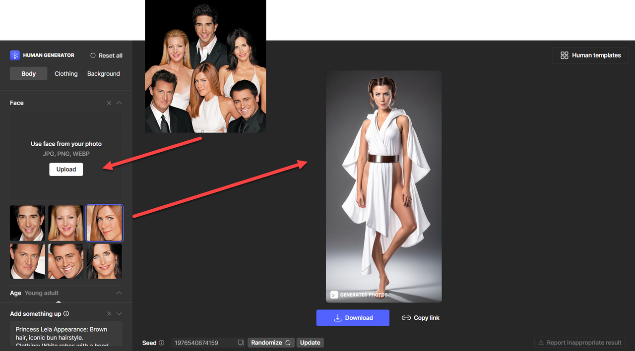 4. You can upload photos with many faces. Human Generator will recognize them all at once. And you are ready to go!