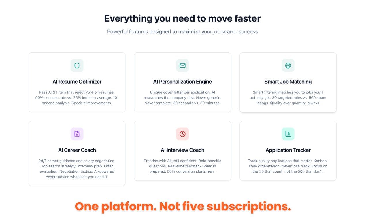 Not "spray and pray." Not 500 generic applications. But AI-powered targeting to the RIGHT jobs with the RIGHT positioning.