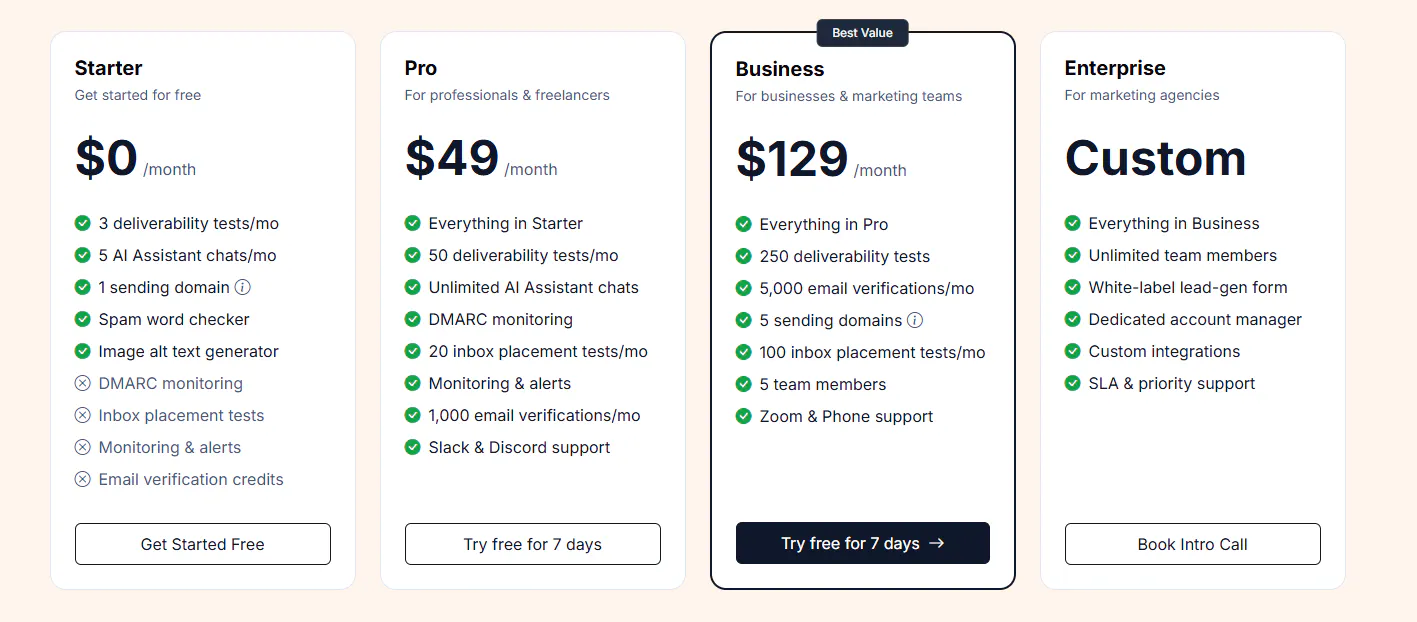 2. The gap between Pro ($49) and Business ($129) is big. Make sure the value difference is obvious enough that users feel the jump — otherwise they'll stay on Pro forever and you'll fight churn when they outgrow it.
