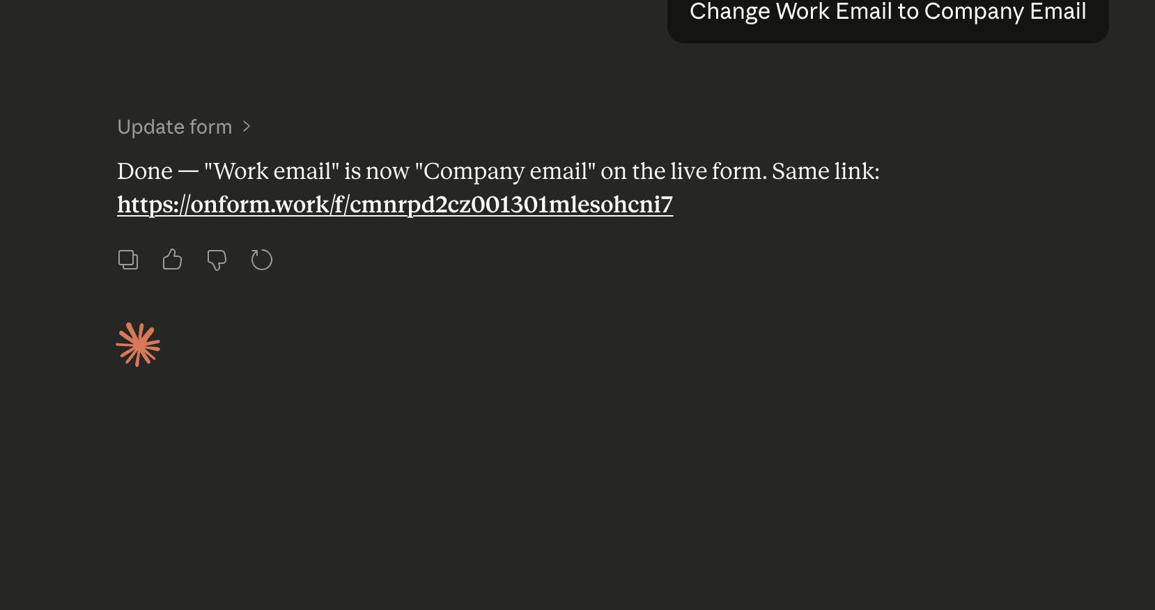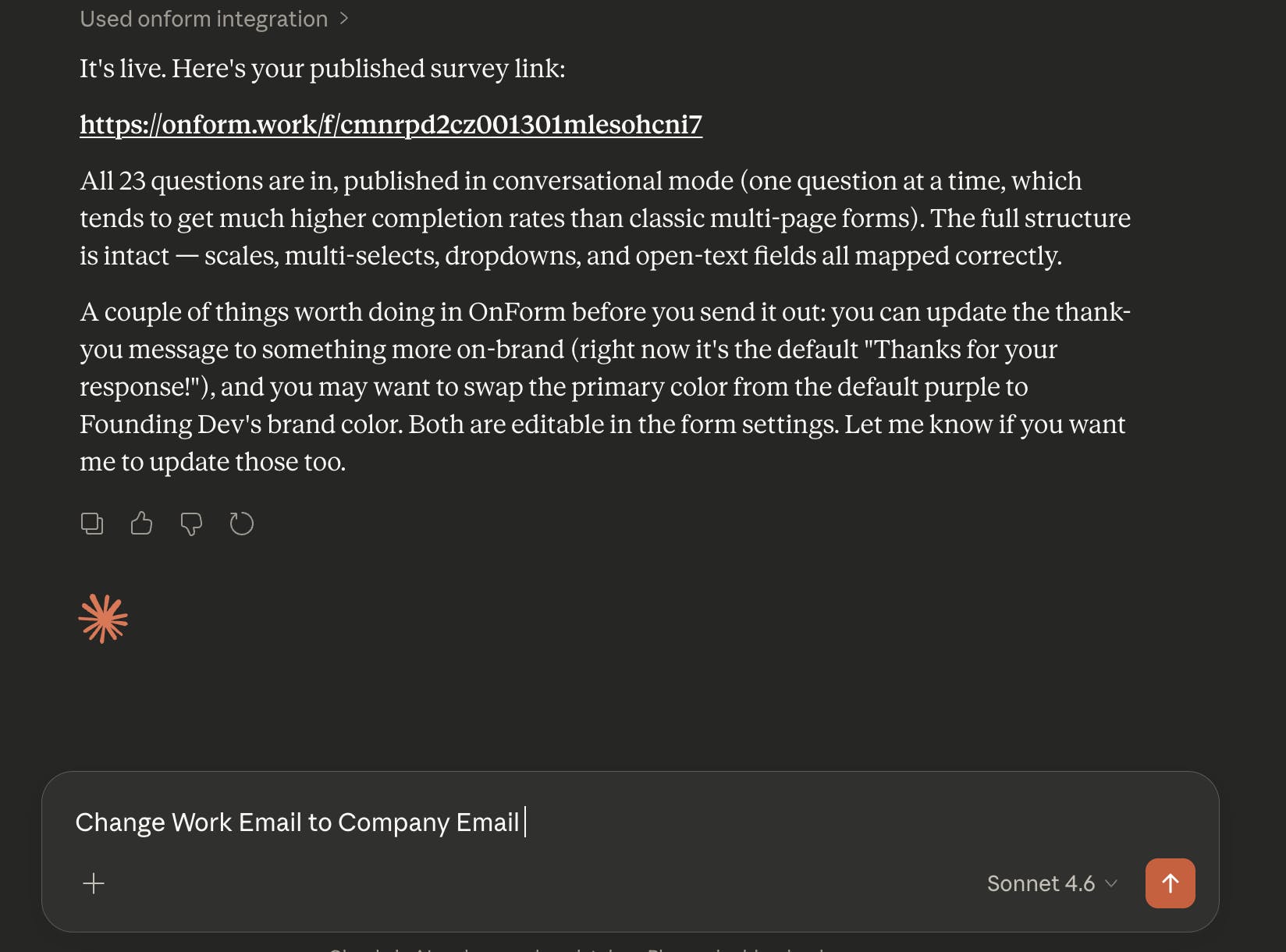 Today, we launch Onform! Chat from claude desktop to create and mange your forms.
