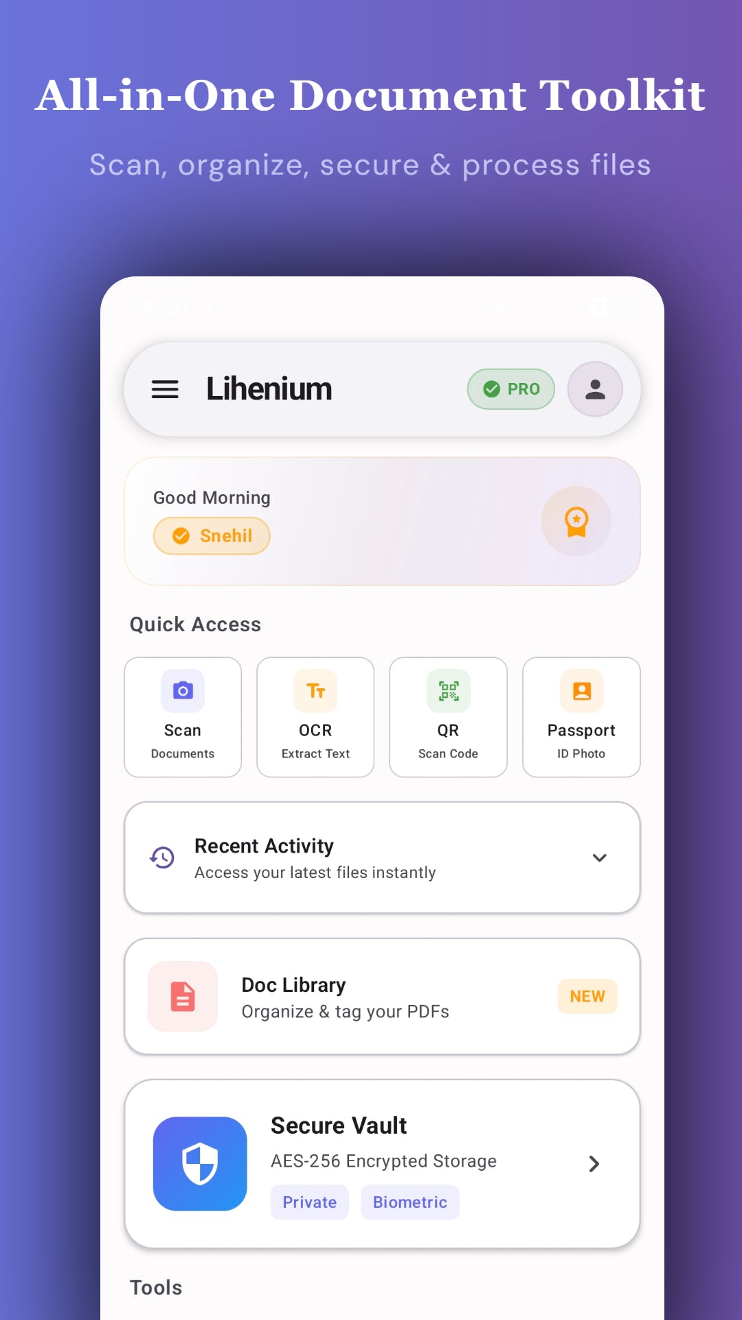 I built Lihenium solo β an all-in-one doc scanner, PDF editor & secure vault for Android.