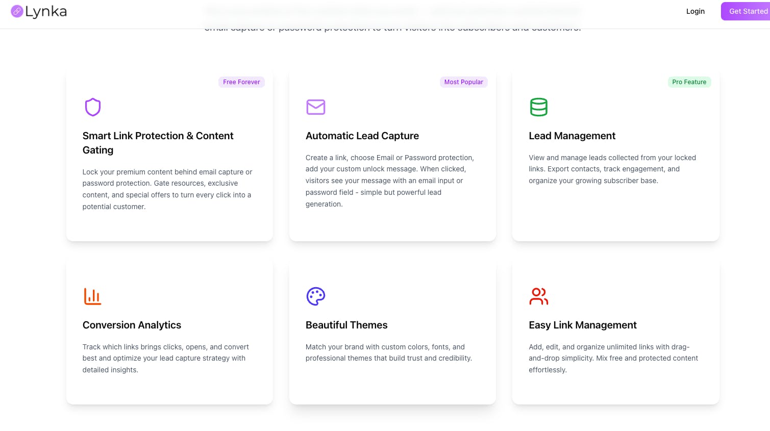 Lynka is a smart link-in-bio tool that helps creators, freelancers, and brands grow their email list while sharing everything with one powerful link. Lock links with email or password, track views, and build your audience automatically.