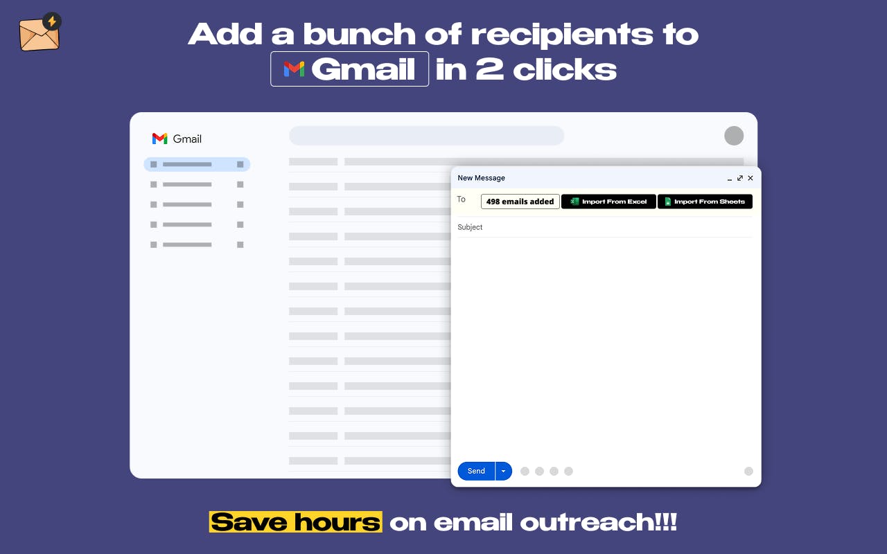 Currently, it performs a simple task: it imports a list of addresses from a spreadsheet (Excel/Google Sheets) directly into the “To” field in Gmail.