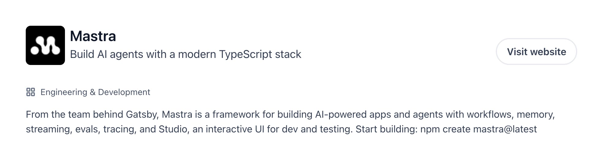 Product tagline: The most important part? [1] We kept it simple and reused the H1 from mastra.ai for consistency.