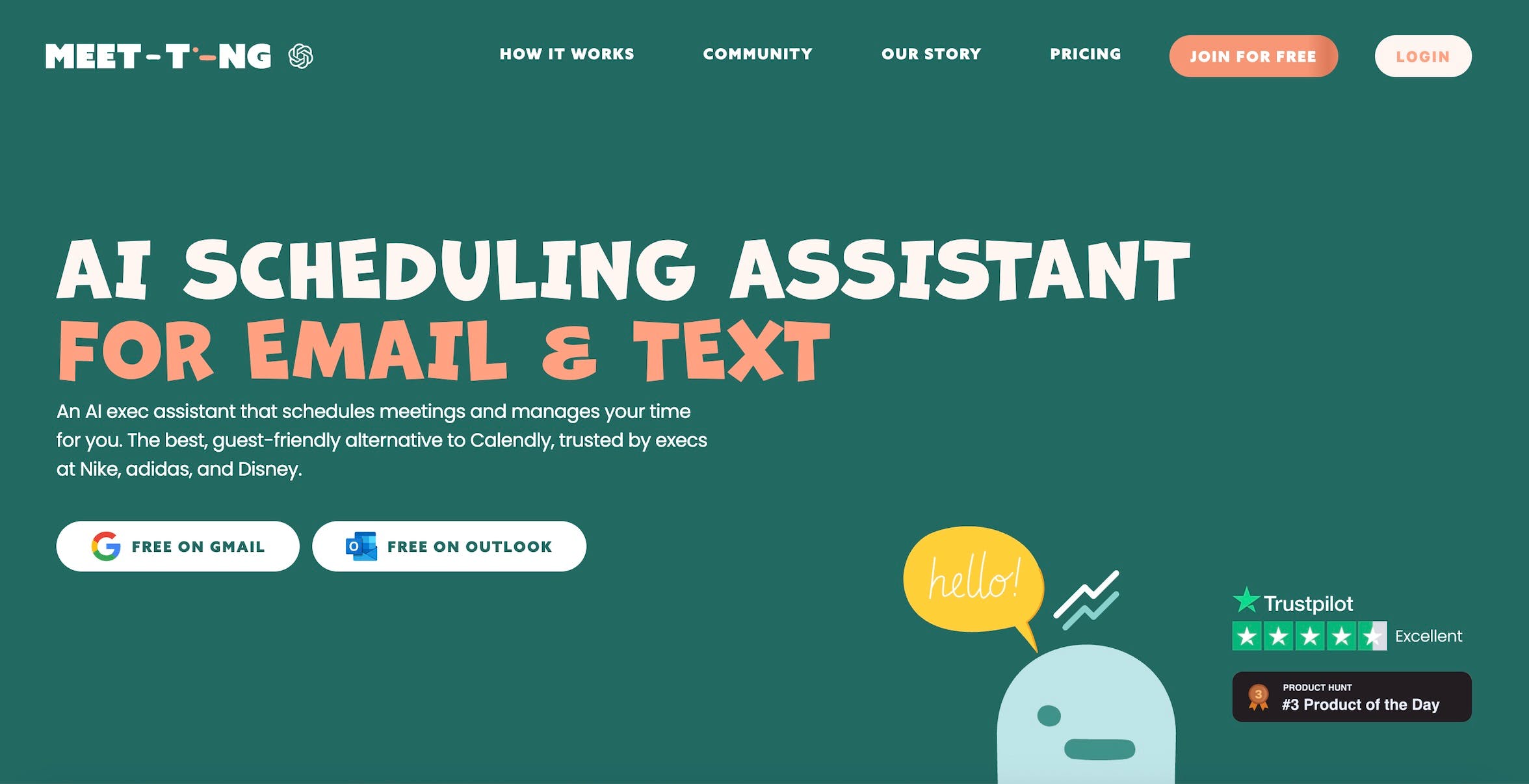 Self-centred update today, but adding the top Product Hunt badge to our site felt real good. See bottom right of image, also online here: meet-ting.com