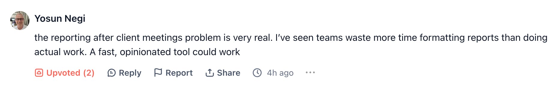 the reporting after client meetings problem is very real. I’ve seen teams waste more time formatting reports than doing actual work. A fast, opinionated tool could work