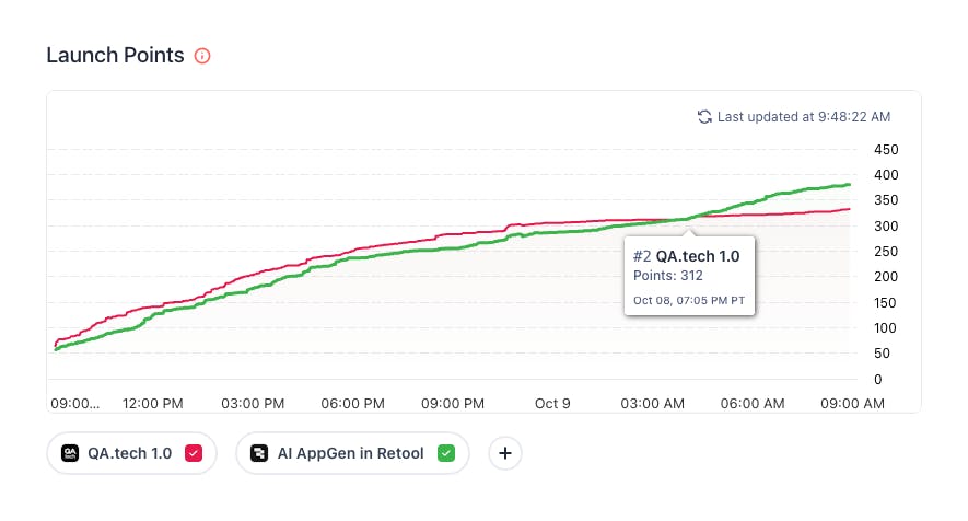 @Retool took the lead! Epic run. @QA.tech remains #2 Product of the Day with 312 points.