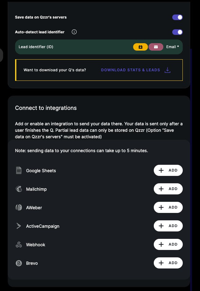 @ashirva51873960 Hi Ashirvad. Great question. Qzzr integrates with these CRM tools at the moment: MailChimp, AWeber, ActiveCampaign and Brevo. We also offer a webhook and an option to download leads in CSV and XLSX format.