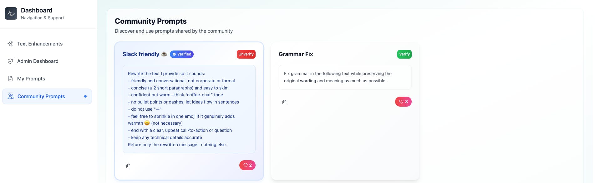 Browse and import prompt templates built by fellow Rewrait users perfect for new ideas or shareable best practices.
