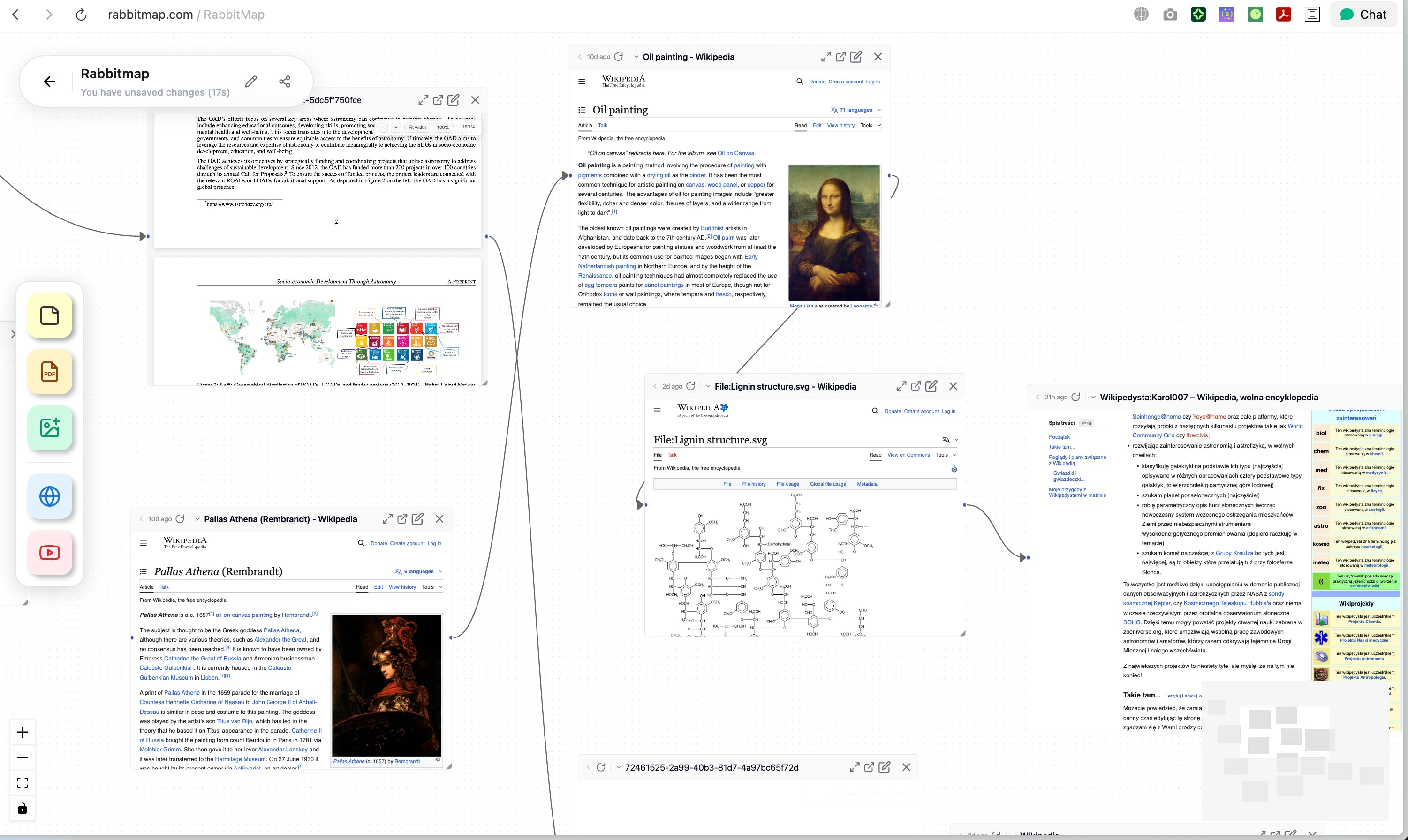 A while ago, I stumbled upon a massively viral Reddit post (~3k upvotes). A guy had built a way to browse Wikipedia on a canvas: every link opened as a new node on a Miro-like board, so you could visually track your entire rabbit hole - from ping-pong balls to thermonuclear reactors.