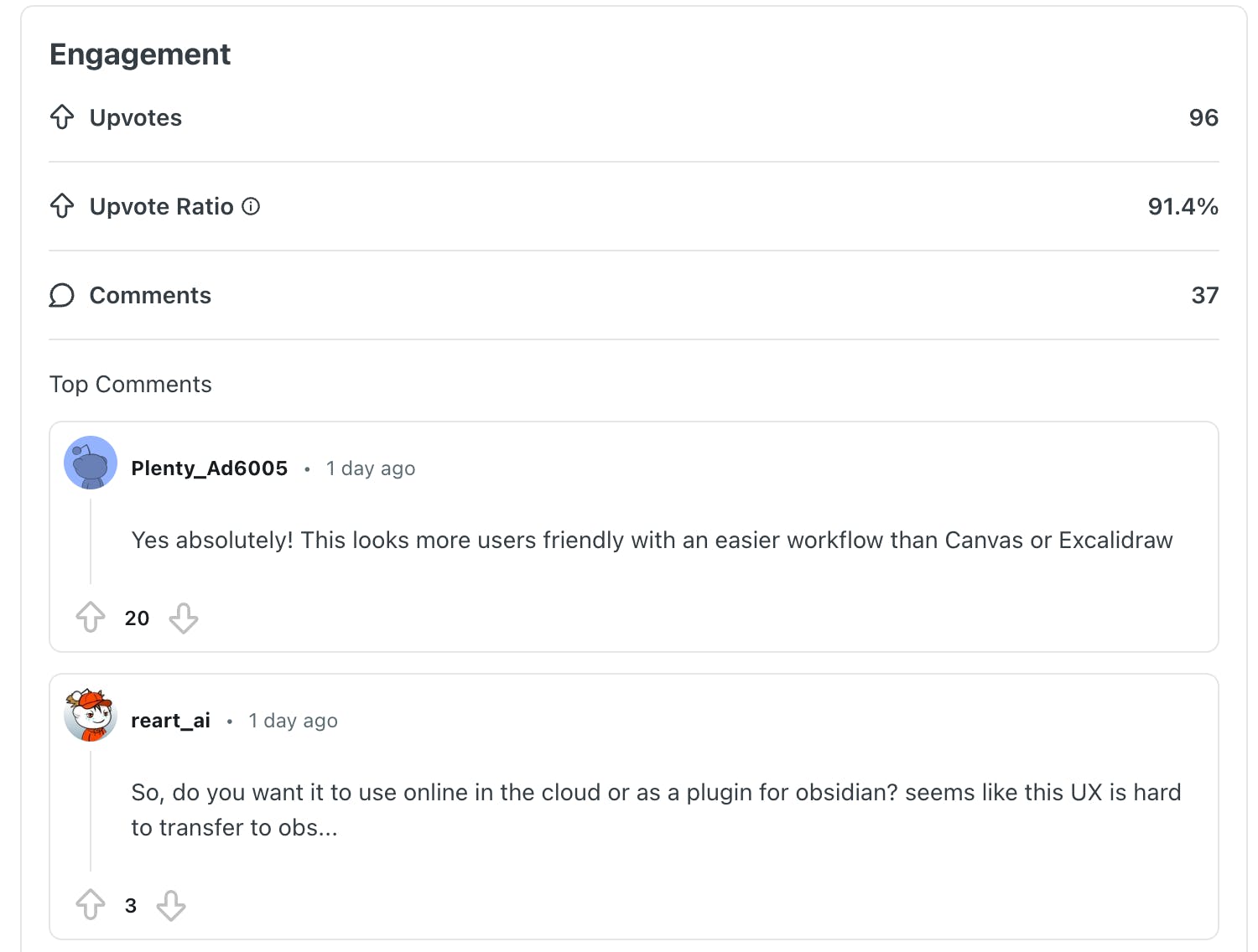 Some posts took off. One already has ~100 upvotes and 37 comments, with users clearly saying: