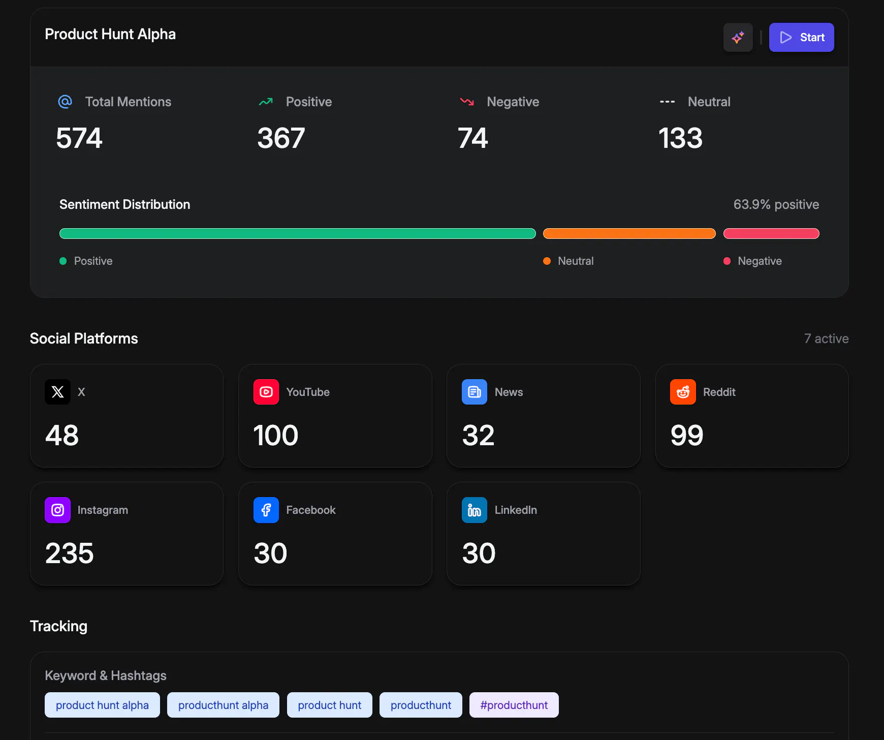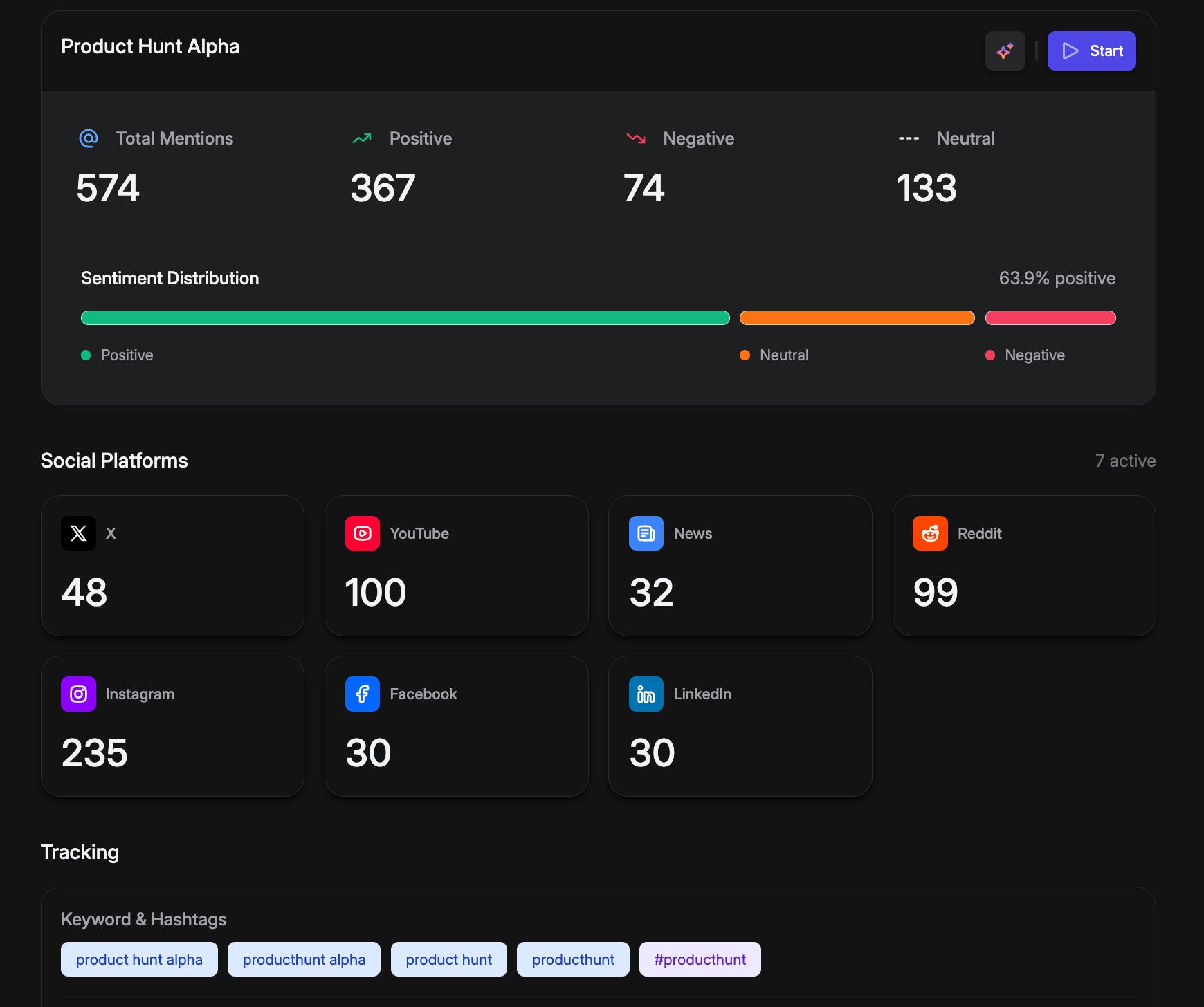 We started by setting up Product Hunt Alpha as a tracked project inside Awshar AI 👇