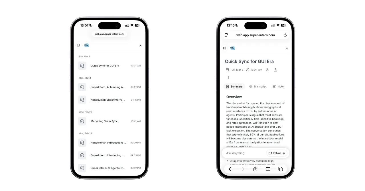 You can now access all your meeting transcripts, summaries, and AI Chat from any browser β desktop or mobile. No app install required for reviewing past meetings.