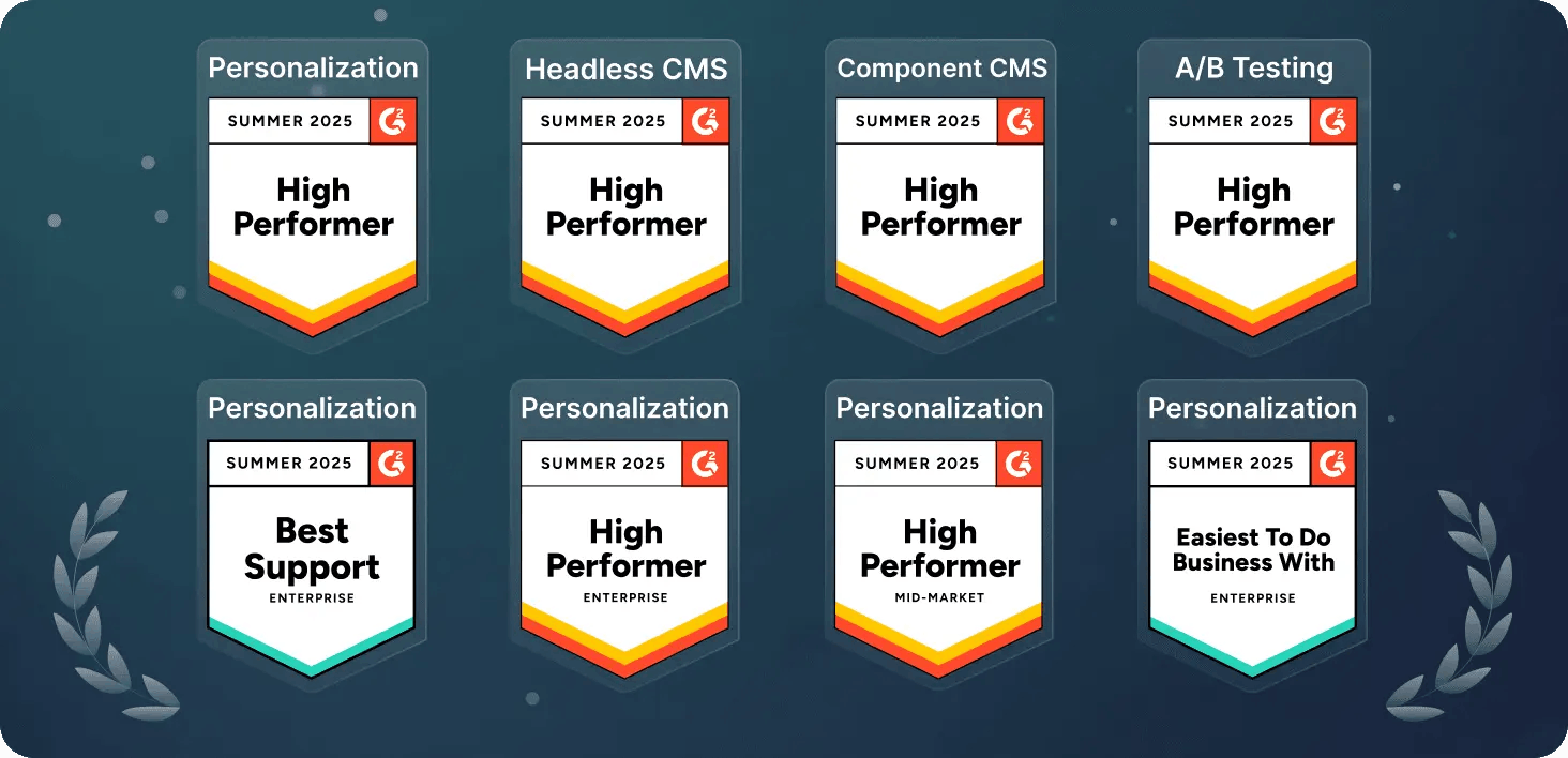 #1 headless CMS for personalization and #2 component CMS at G2 Summer 2025 reports