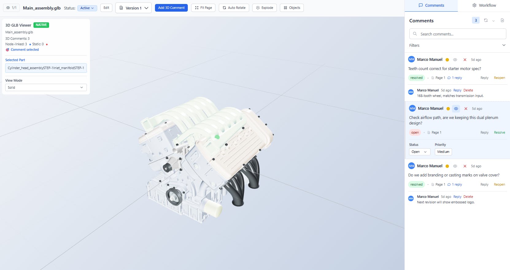 With PDF Reviewer you can upload up to 500mb 3D Files and get collaborating with your team through spatial commenting and custom approval workflows.