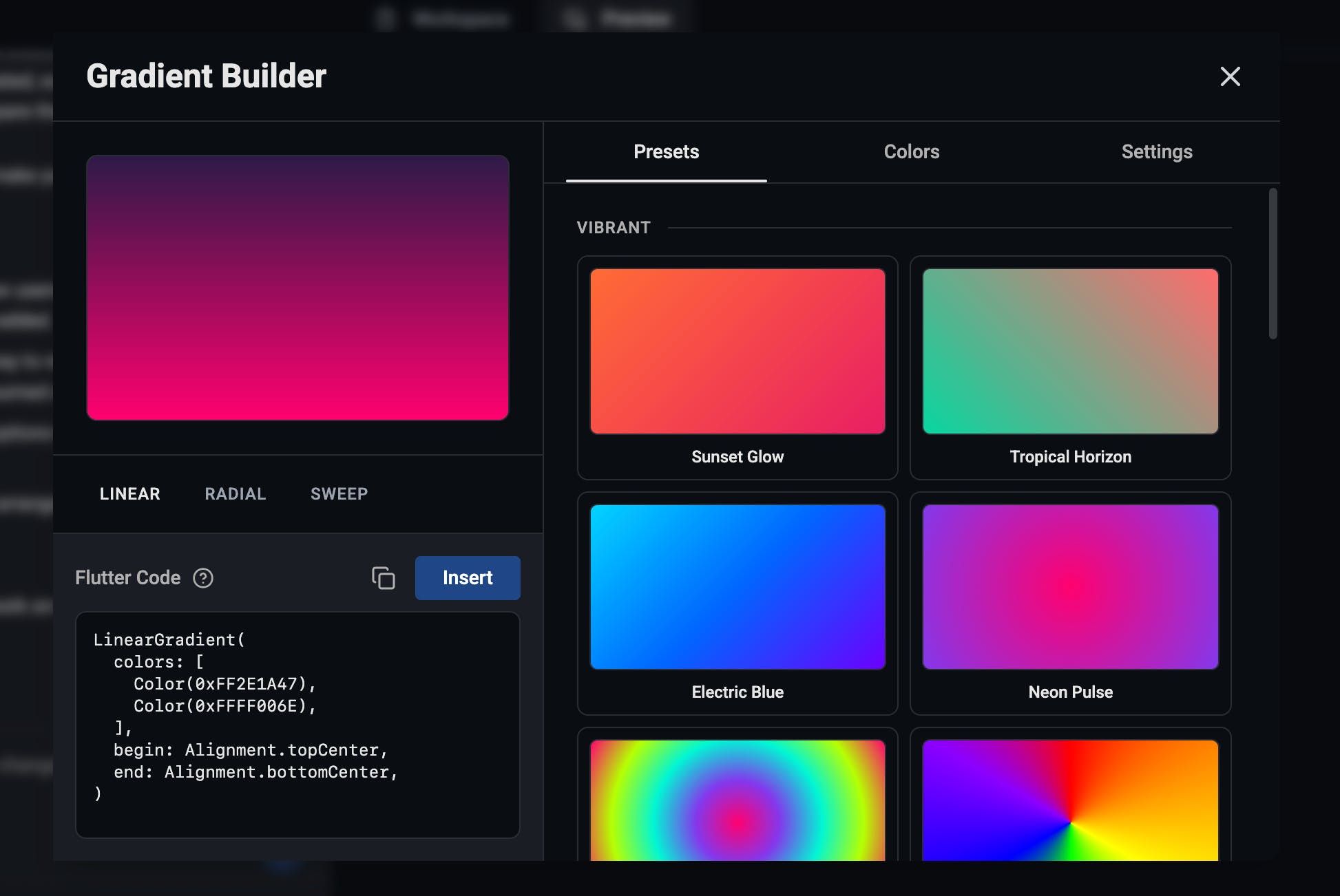 You can now visually create gradient backgrounds, adjust colors and angles, and see the result instantly. No hex guessing. No CSS tweaking.