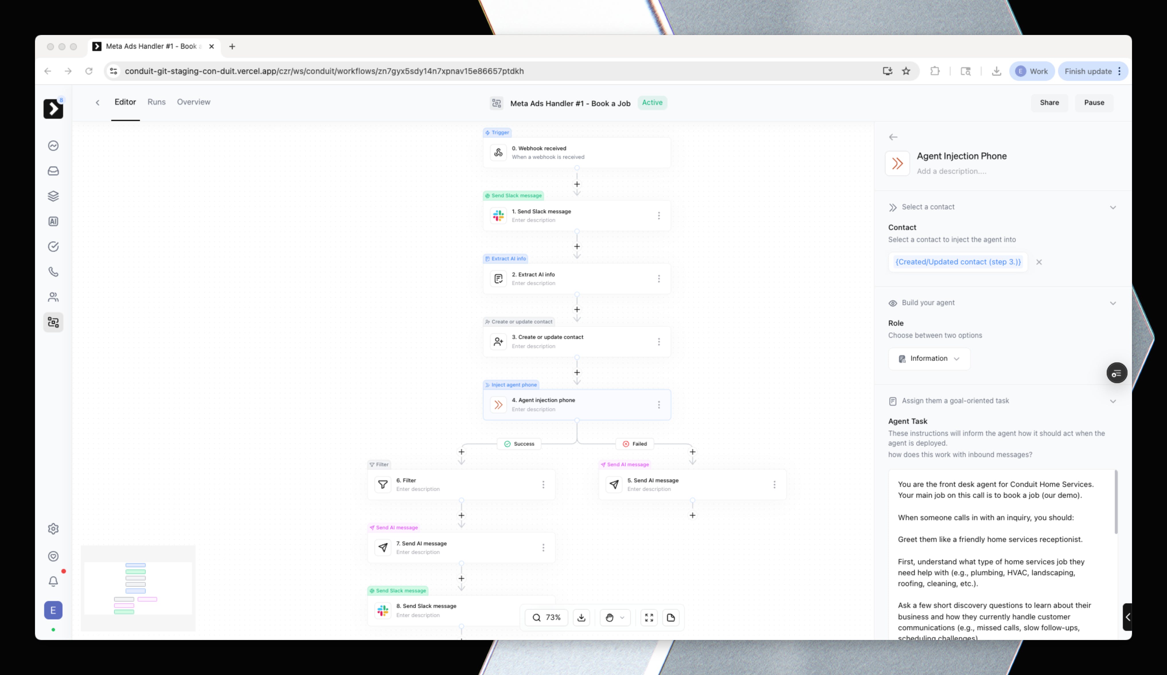 The funnel is: Facebook → Perspective click funnel → Conduit AI, where our voice AI calls every lead. The calls have two purposes 1) book demos 2) ask and understand why they clicked on that particular ad.