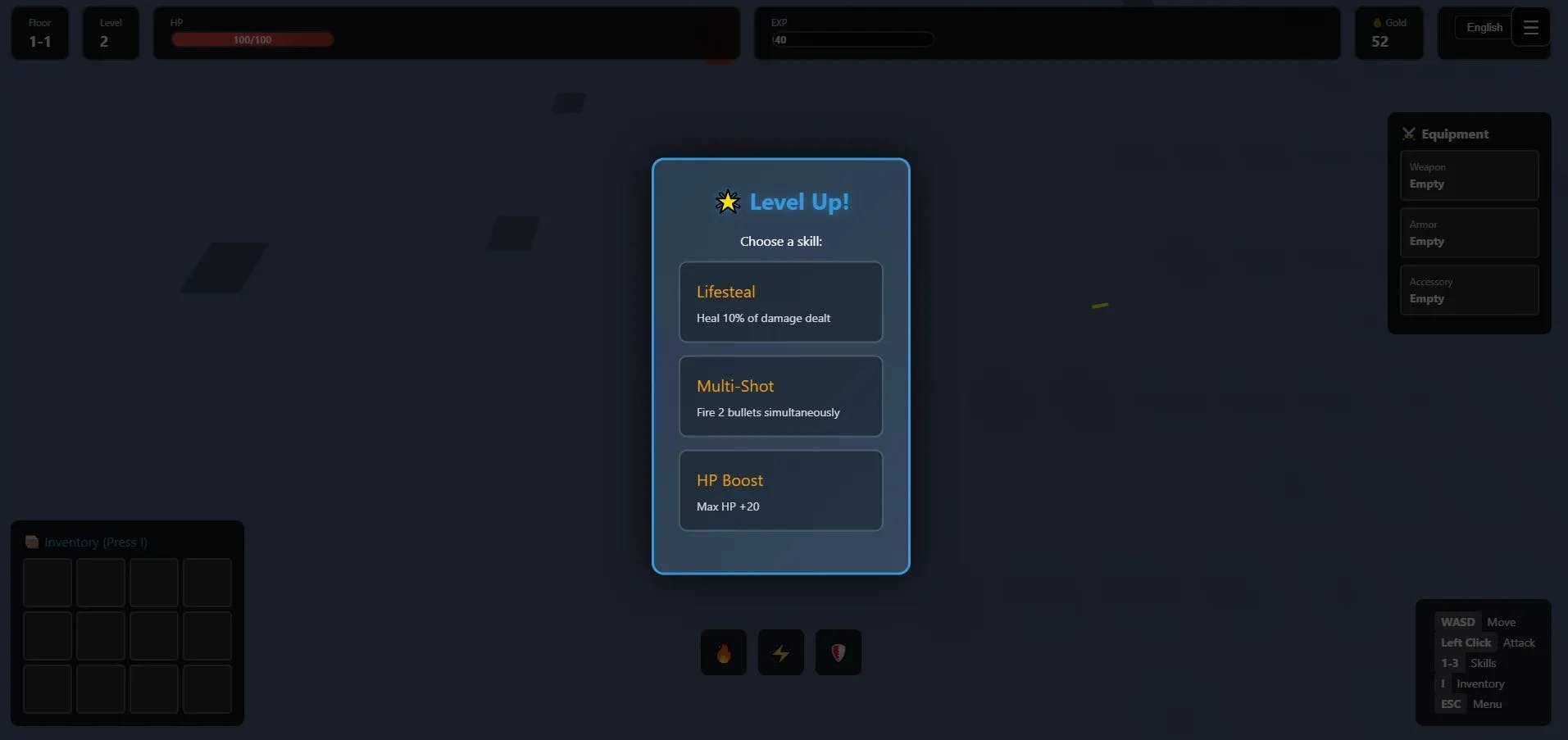 - Procedural map generation each run.