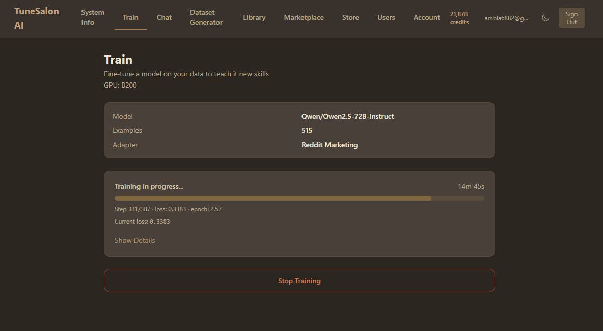 What I'm building at the moment is finetuning platform where everyone can create dataset for training, train open sourced LLM with that dataset, try chatting with that model, and export or share with other people in adapter format or GGUF format regardless of their tech-level.