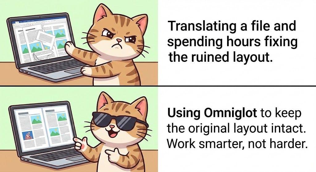 One of the products I am most excited about is Omniglot, our AI powered translation companion. It speaks every tongue, adapts to your personal style, and keeps the original layout intact so you never waste time fixing the final file. With simple pay as you go pricing it stays affordable for everyone, and as a cloud based web app you can use it anywhere.