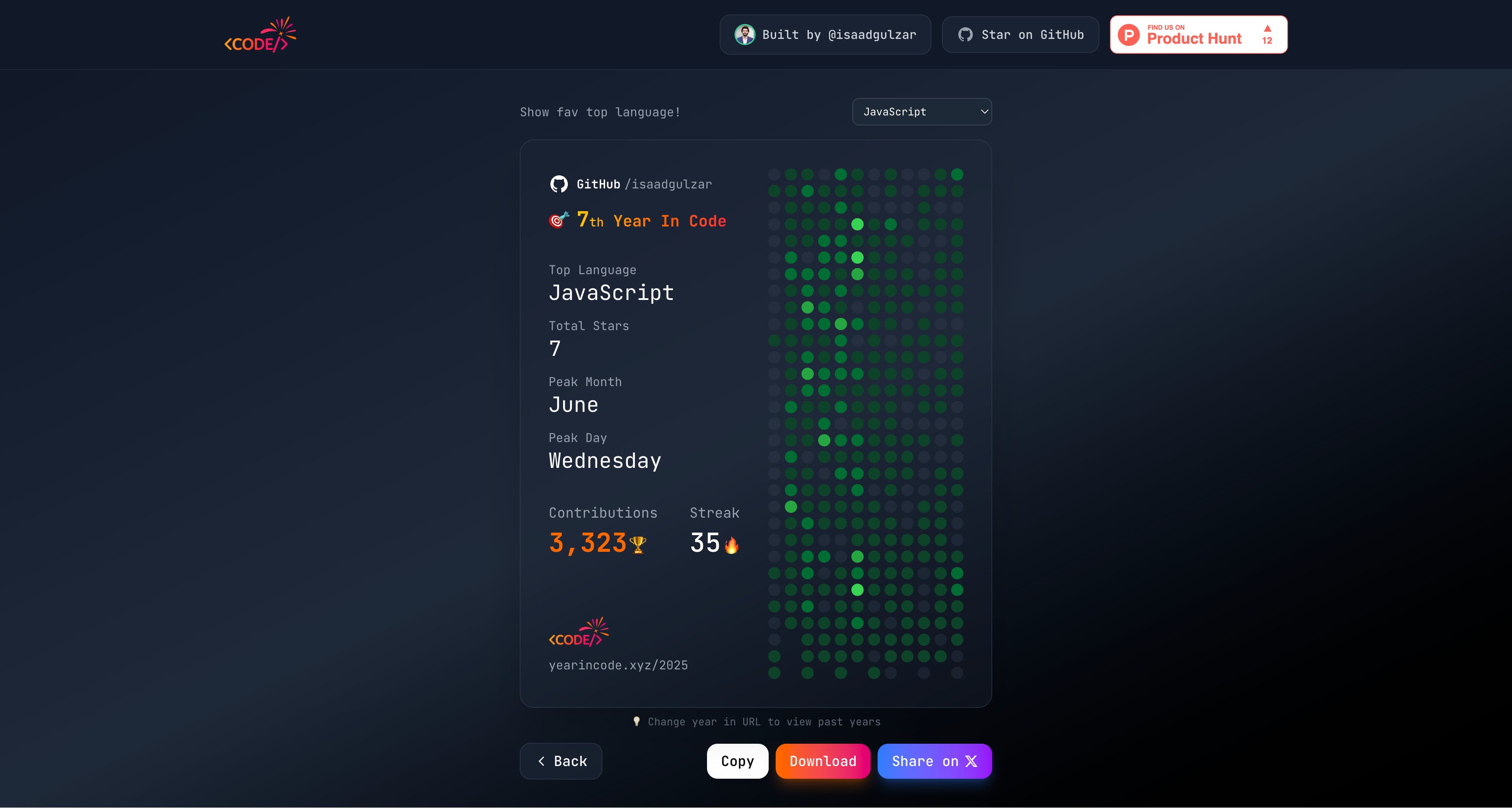 I'm Saad, just launched my first product on PH today - Year in Code!