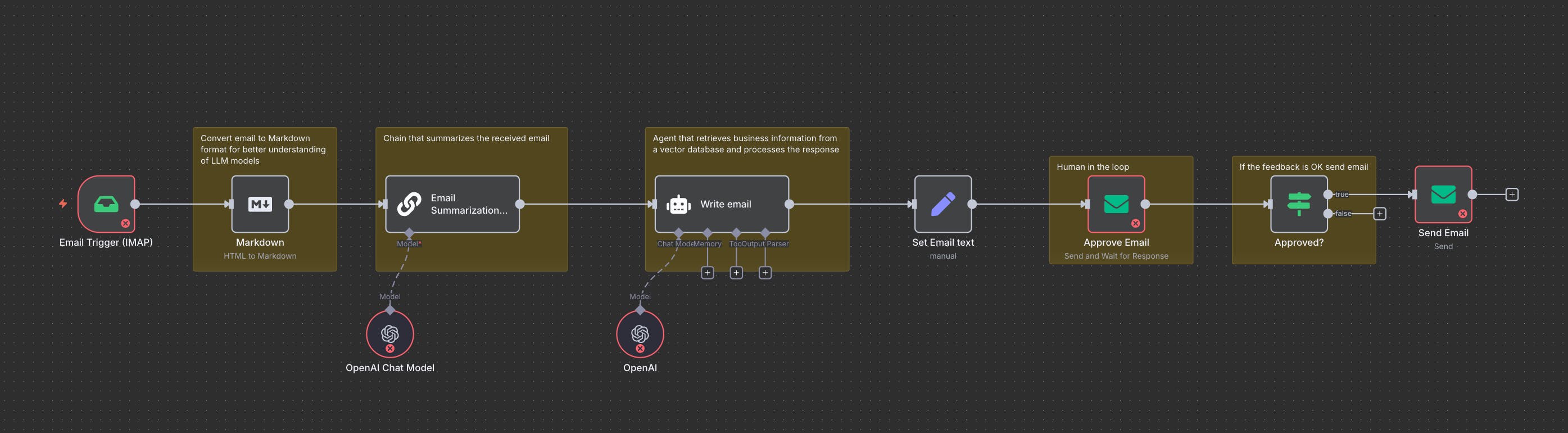✅ Sends draft for human review before sending (“Human-in-the-loop”)