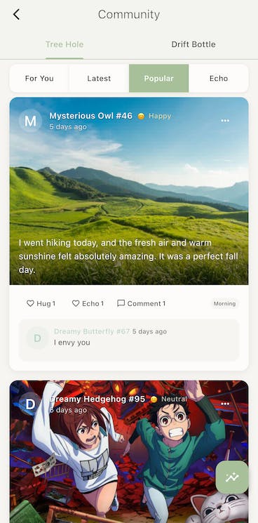 • Tree Hole & Drift Bottle (anonymous sharing)