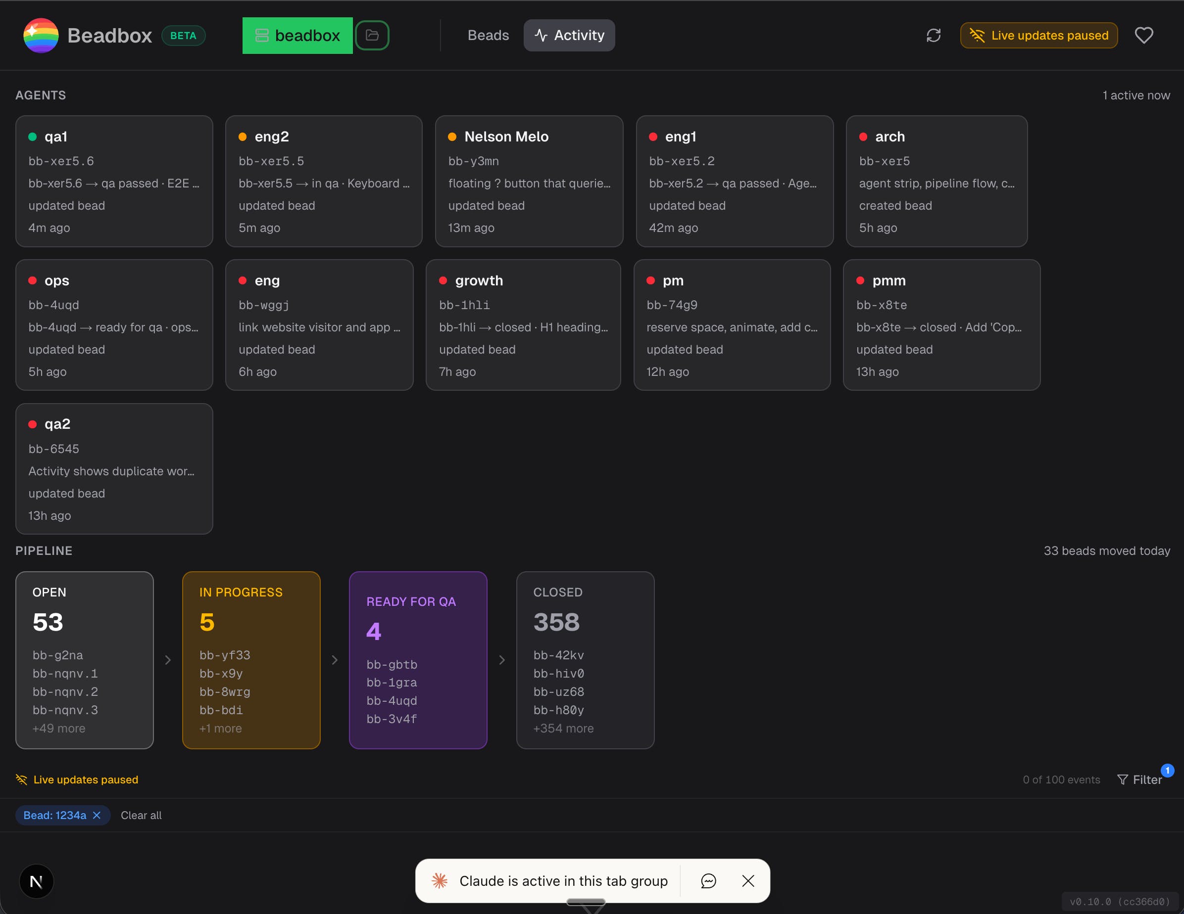 Beadbox: Real-time visual dashboard that shows you what the fleet is doing. This is what you're reading about.