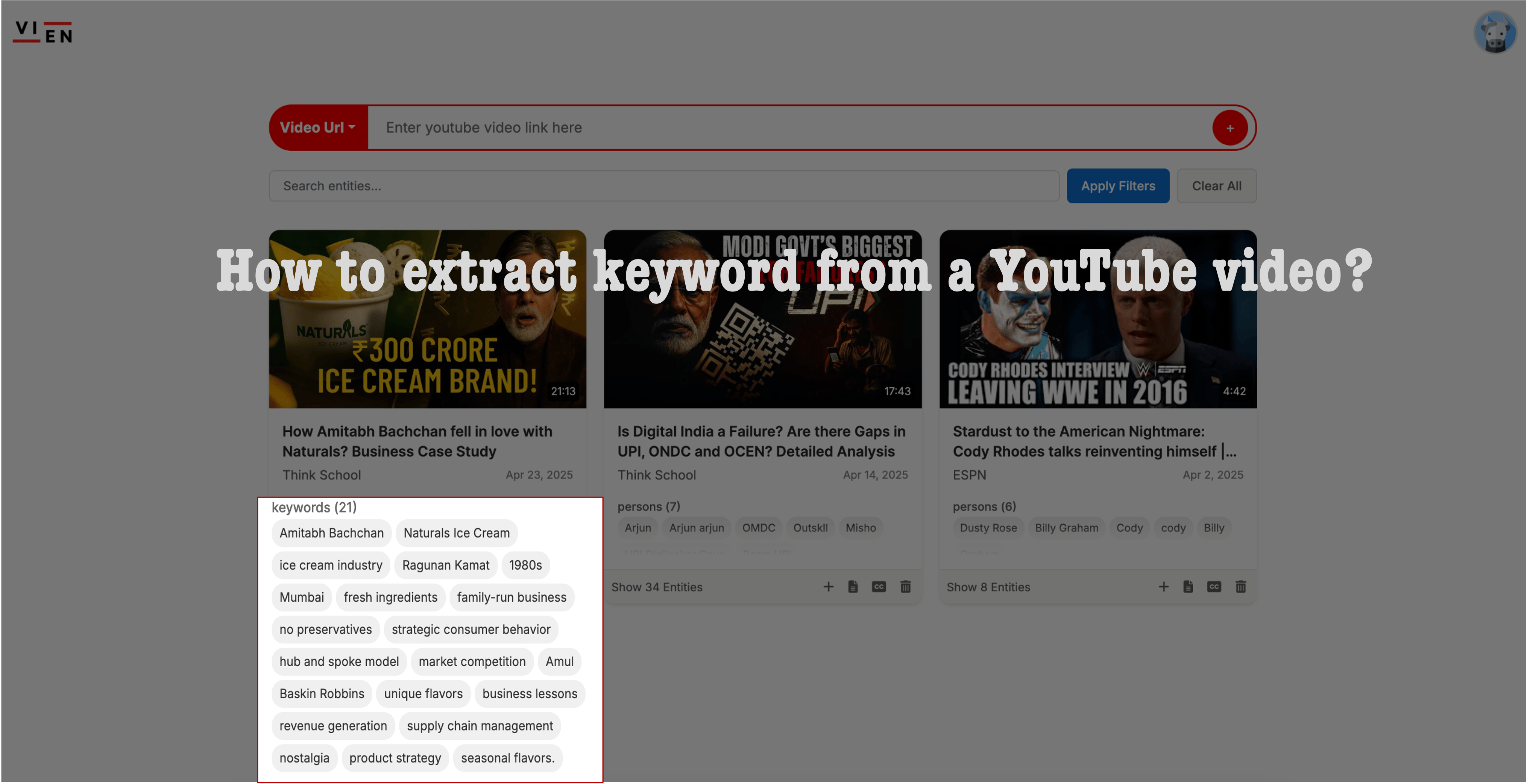 Automatically extracts all spoken keywords from your videos, making it easier to find older content when you're creating Shorts or doing research.