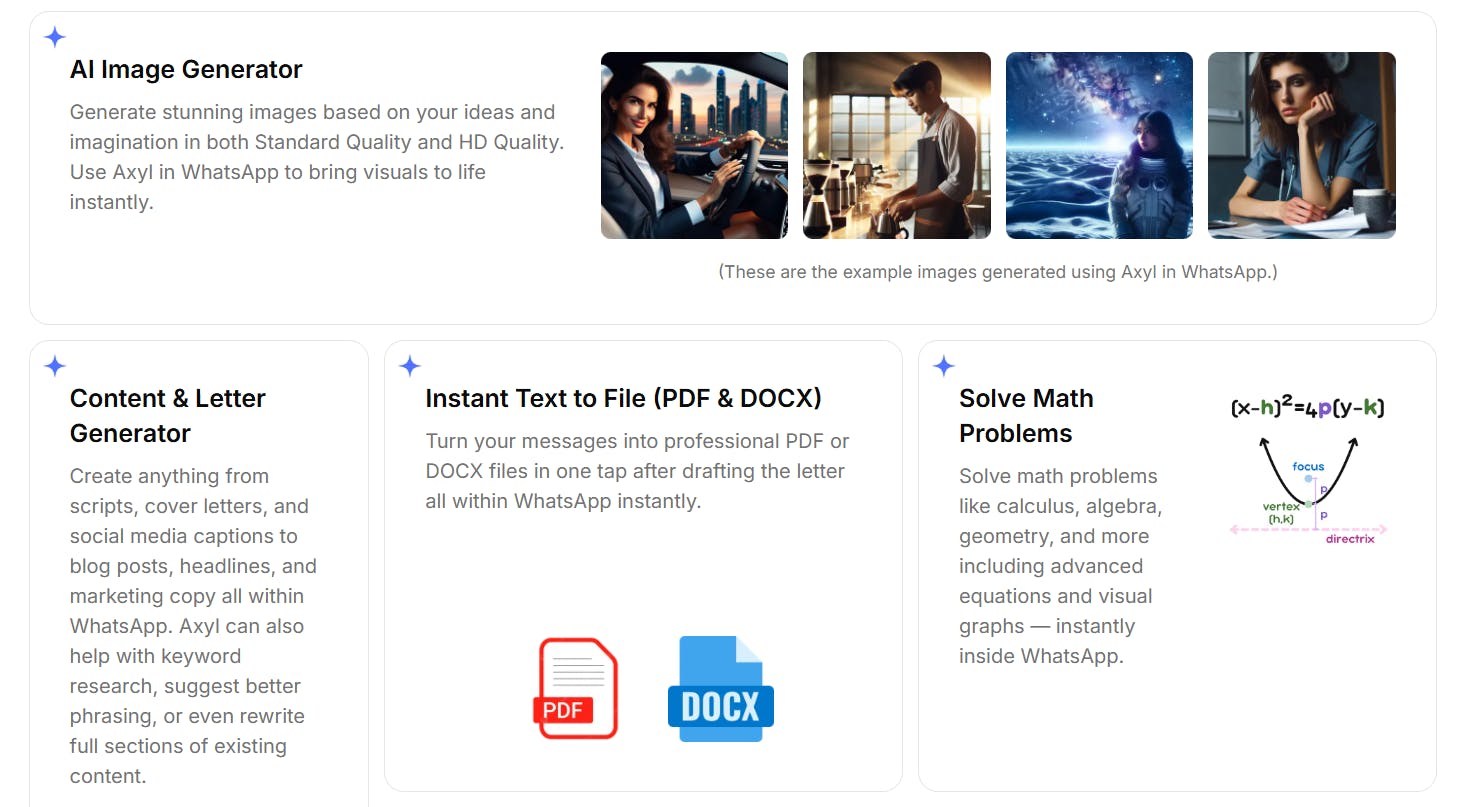 Say hello to AxylAssist AI , a daily superintelligent AI assistant that works entirely inside WhatsApp. Powered by top AI models built to help with various use cases. No downloads, no learning curve, no extra apps. Just use it on WhatsApp. Make it accessible to everyone and get help instantly at your fingertips.