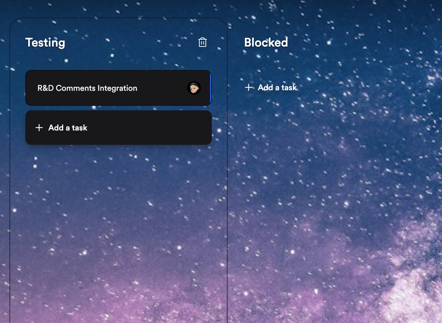 Add Task now appears inside the column you are in - no hunting at the bottom.