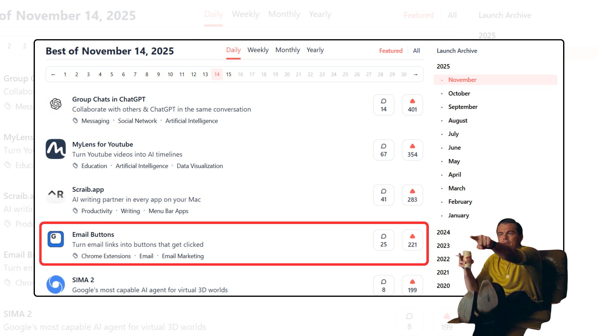 Launched Email Buttons on Product Hunt yesterday - hit #4 Product of the Day š