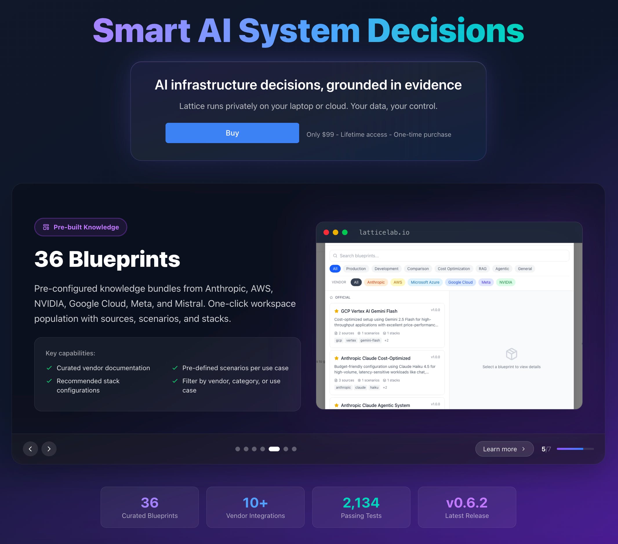 Lattice enables smart AI systems decisions. When building AI systems there are so many decisions to take. What model to use, which vendor to use for GPUs, which framework works best with my use case, how does pricing compare across different permutations, and so on. Then there are sensitive business requirements which are usually under NDA and cannot be shared with vendors with ease. Lattice enables startup and enterprise AI labs to self-serve this research and take high quality decisions within the privacy and comfort of own laptop or private cloud.