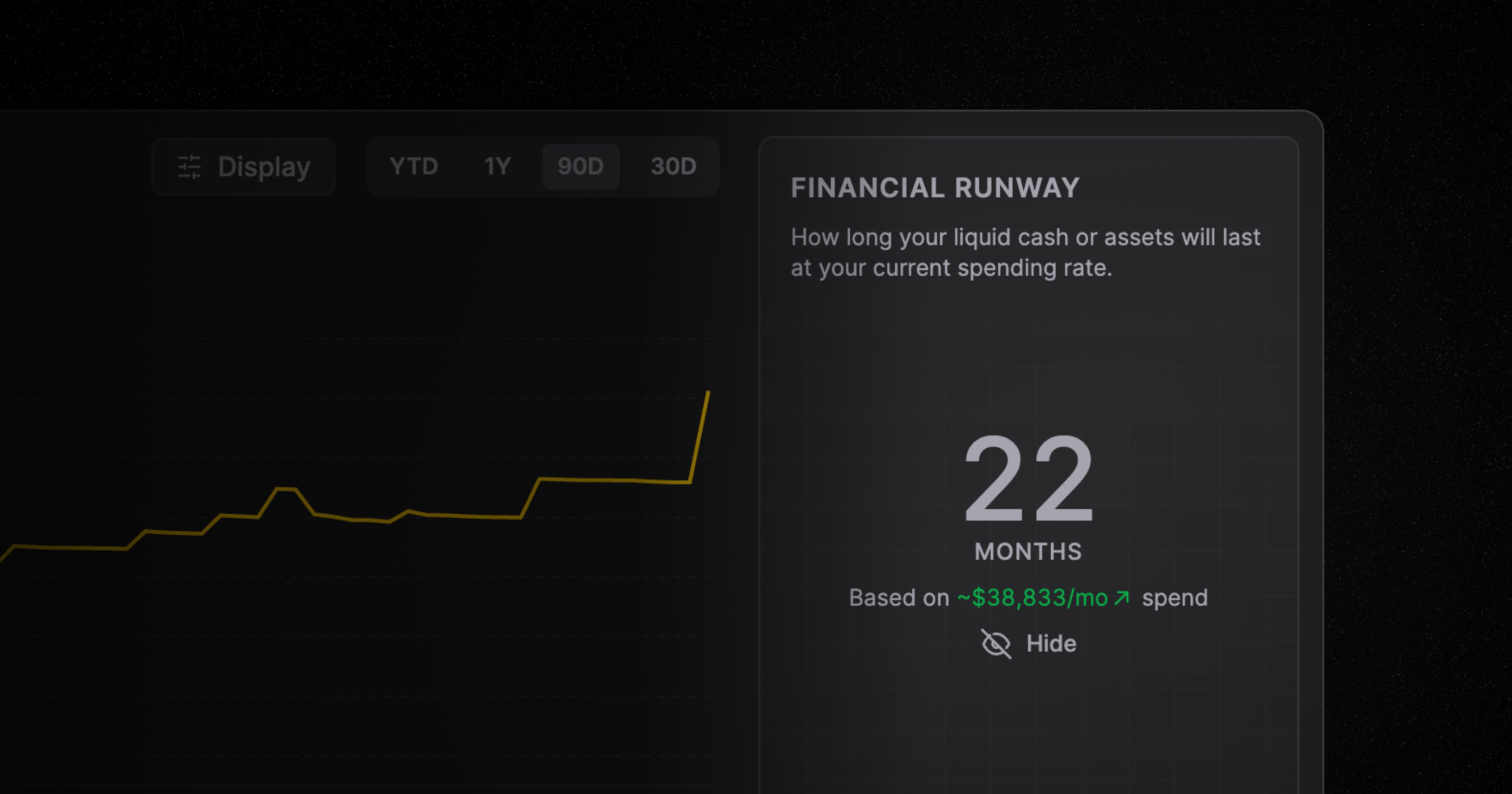 Introducing Financial Runway — a new widget on the Dashboard that shows you how many months your cash will last based on your monthly spending.