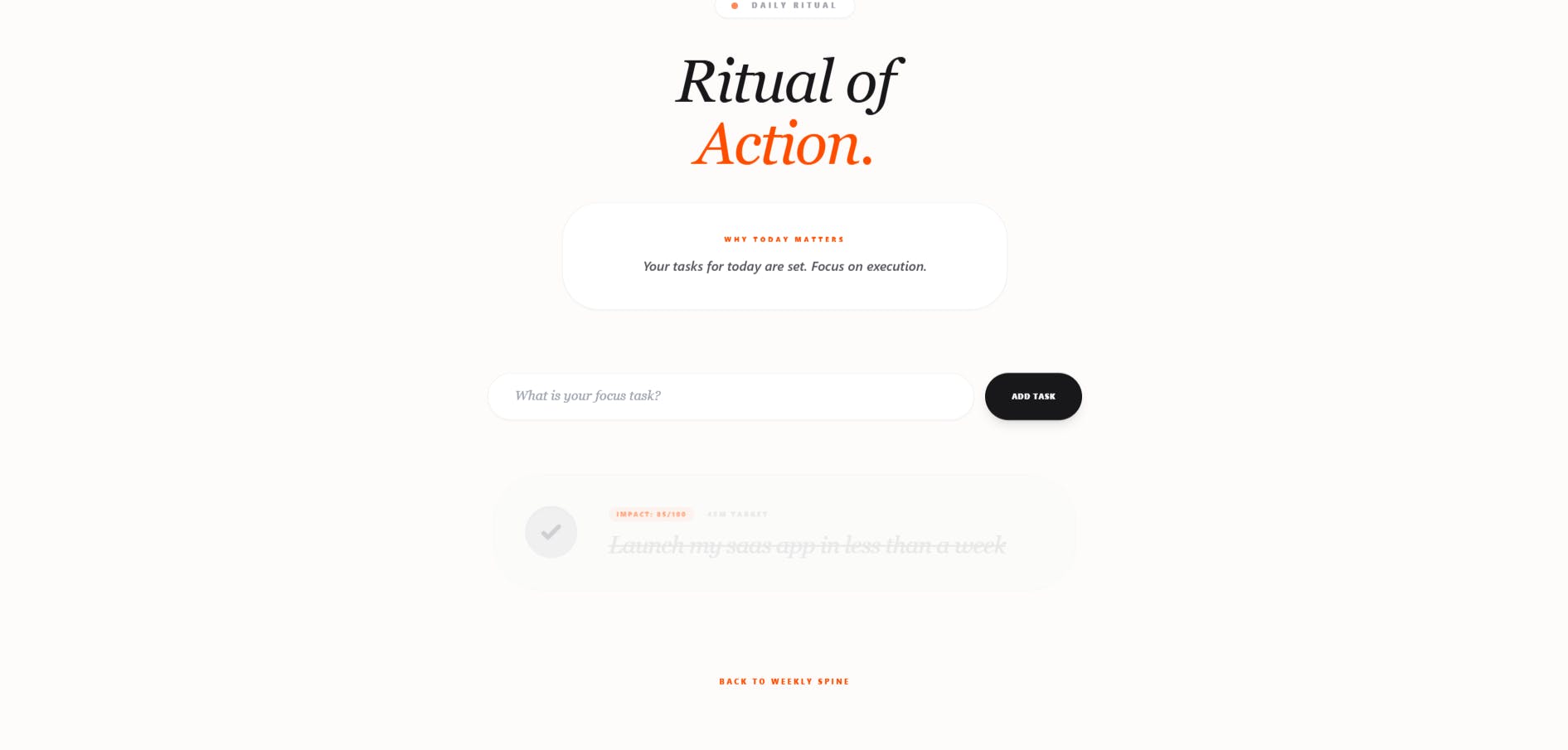 Founder‑first UX: built around how solo founders actually work (context switching, uncertainty, self‑doubt), not corporate rituals.