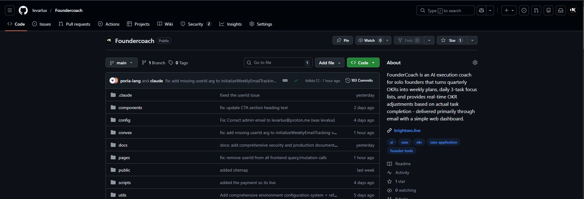 Founder Coach is an open-source OKR tracker with a built‑in AI coach, designed for solo founders and tiny teams that hate traditional OKR tools.