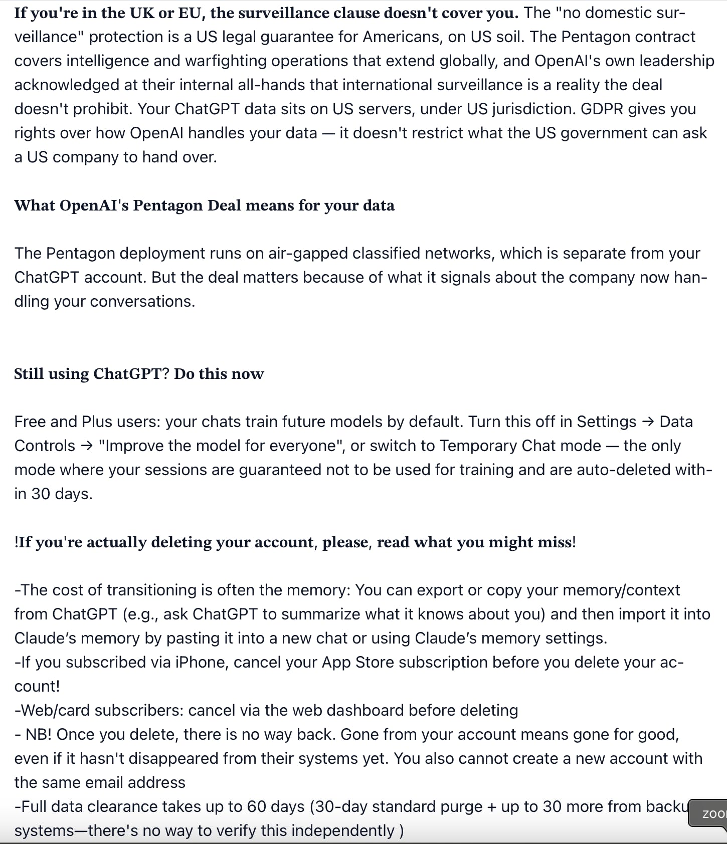 @fajarsiddiqΒ I wrote a post about it. Everyone keeps sharing the fact that it happened (or posting screenshots of cancelling their subscriptions), but what does it mean for my data and what should I do? - should be the real question https://www.producthunt.com/p/general/many-are-quitting-chatgpt-most-of-them-haven-t-researched-what-s-actually-happening