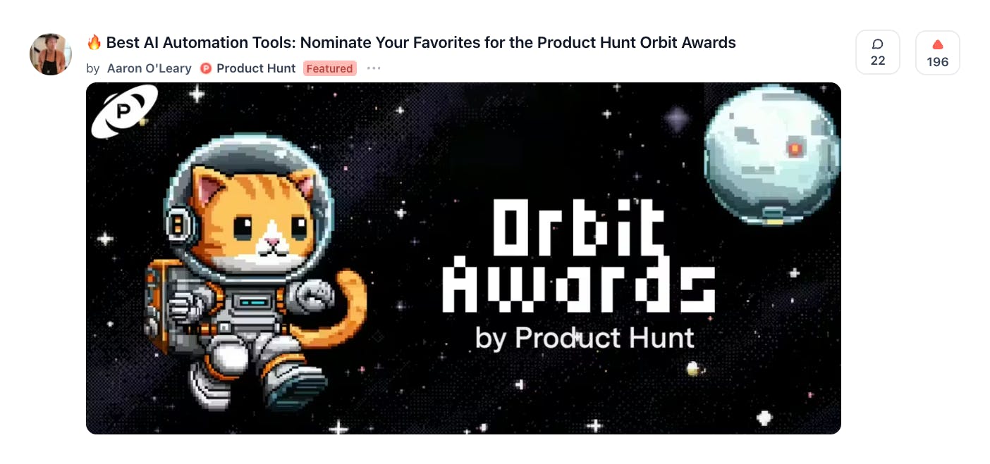 ICYMI @aaronoleary and the Product Hunt team are currently looking for this year's best AI automation tools. I'd nominate: