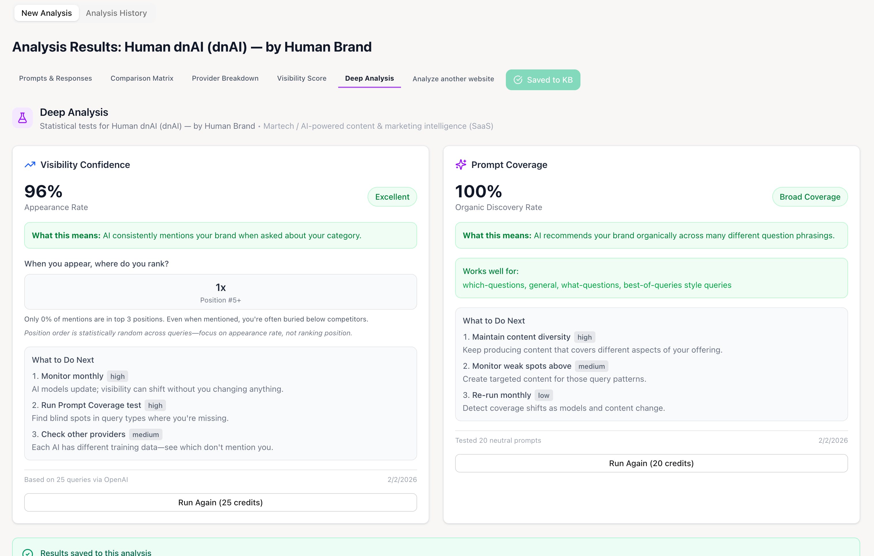 Visibility Confidence tells you if you appear consistently.