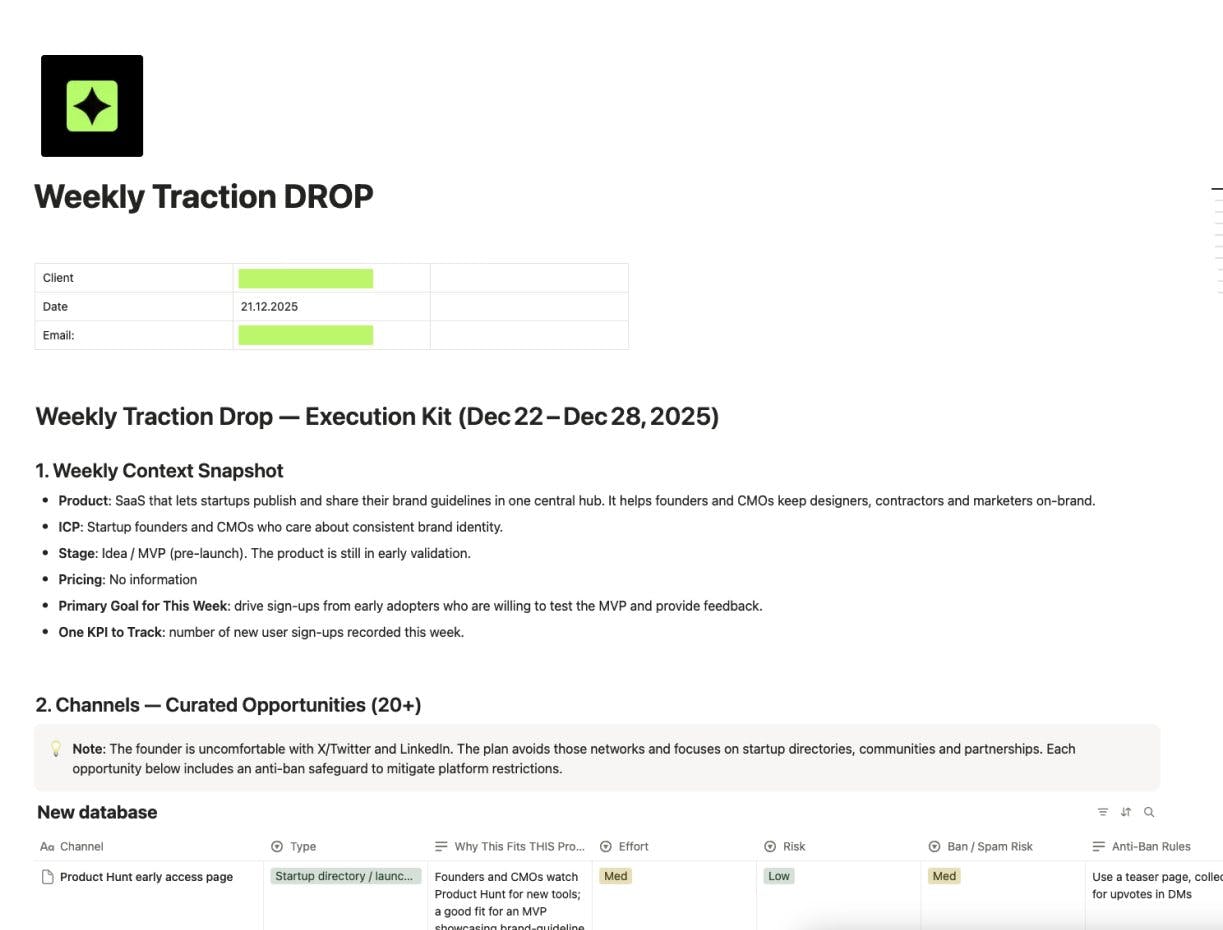 No generic advice. No “post more on X”. Just a focused traction system. What do you think?
