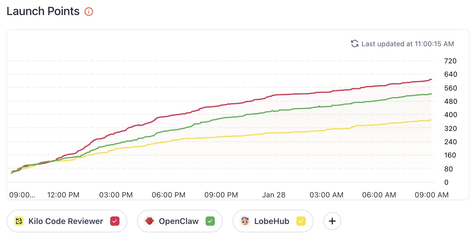 Currently, the launch day dashboard lets you compare with products launching the same day.