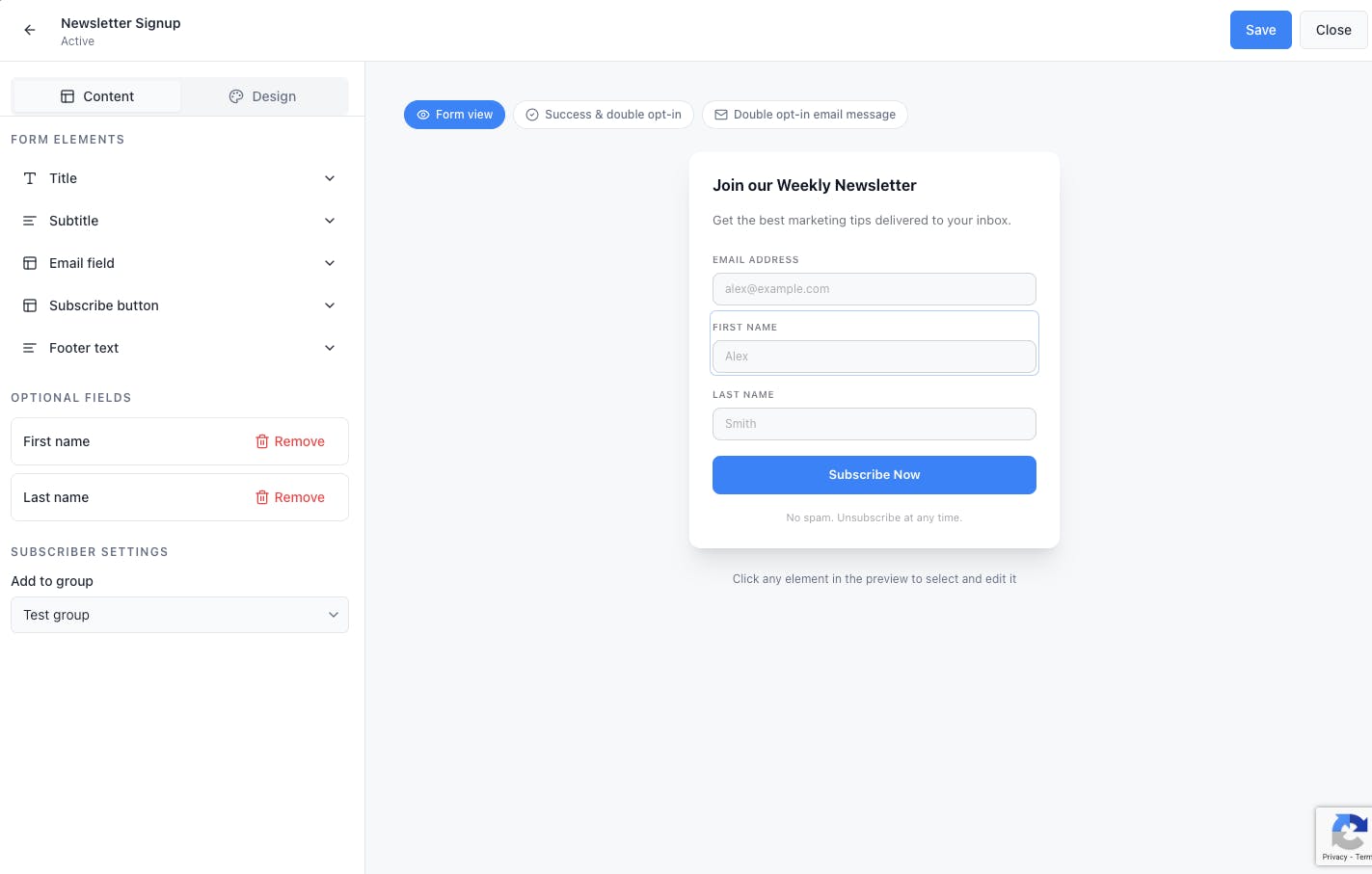 Collect emails using signup form,