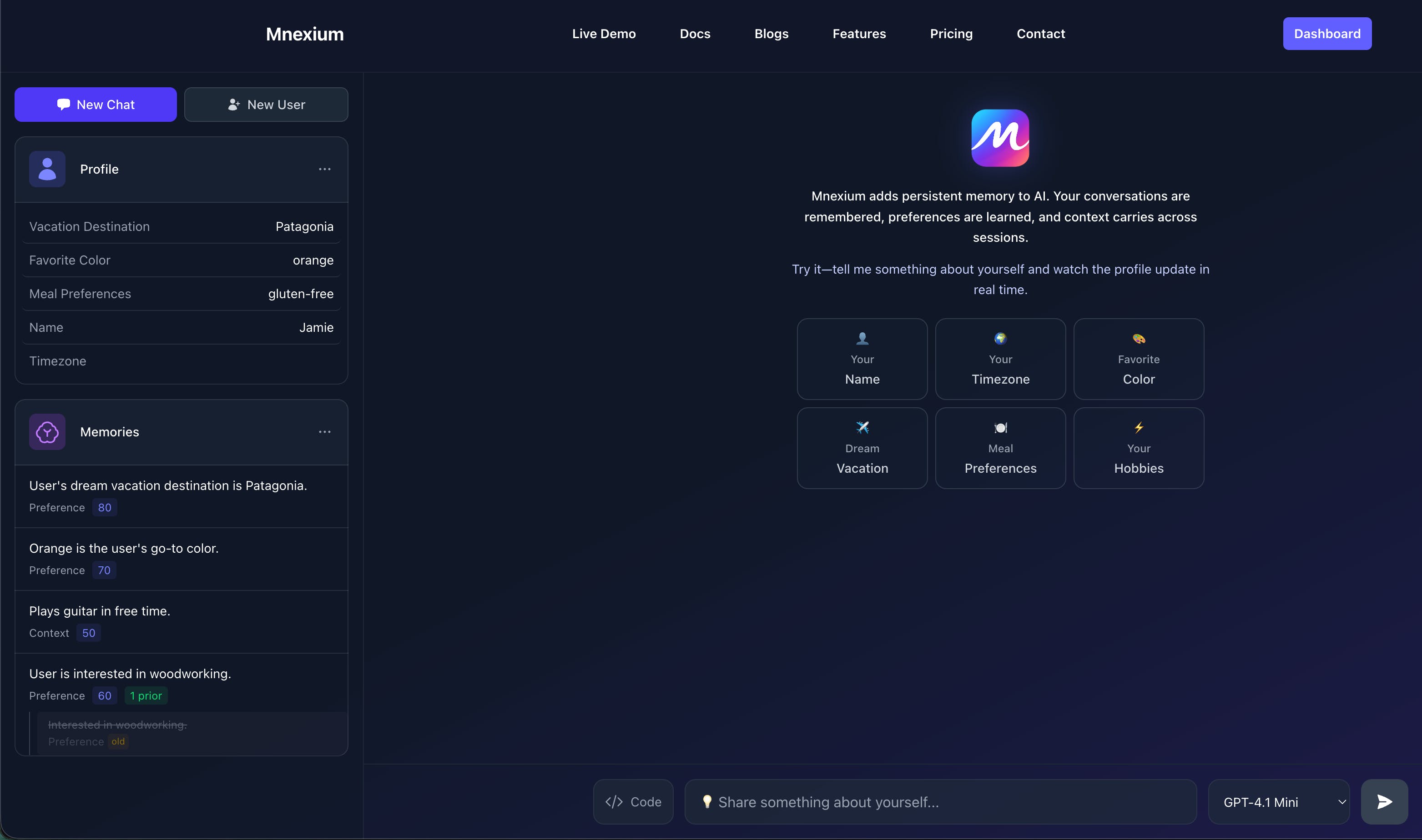 Docs and code samples only go so far. We wanted developers to feel what it's like when AI actually remembers users. The demo lets you experience it in 30 seconds.