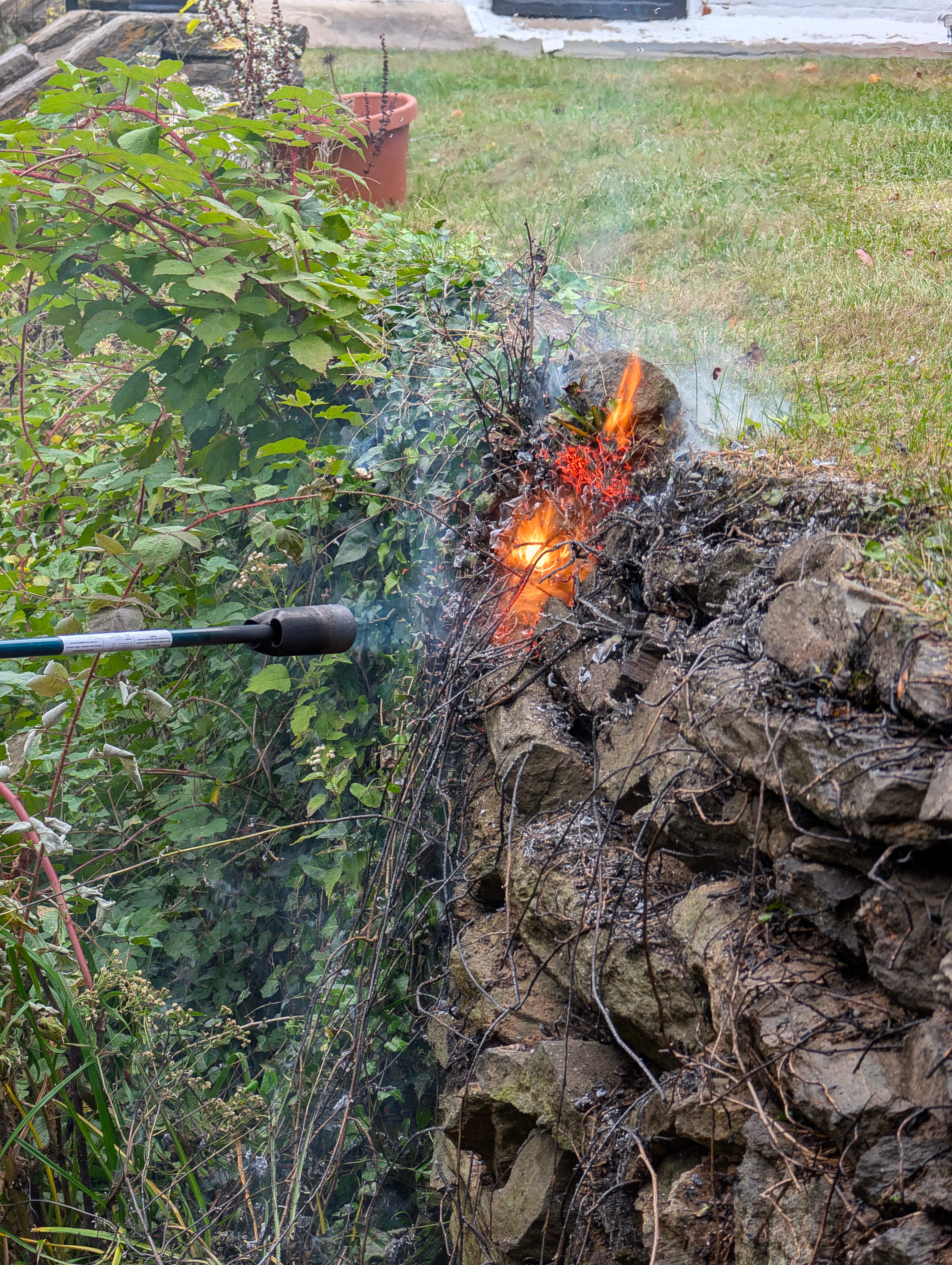 @busmark_w_nika Here is a link to a YouTube Video. And attached is a photo of me flame weeding some nasty ivy off of a stone wall. The ivy had jeopardized the integrity of the wall. But not any more....