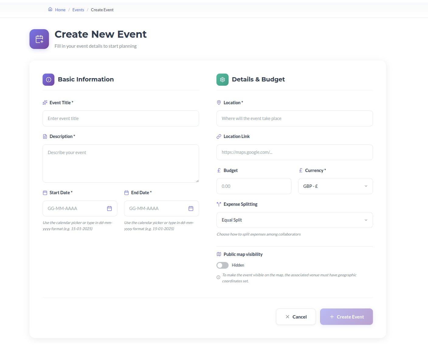 Every detail is built to guide users naturally, reduce cognitive load, and make event creation feel effortless from the first click.
