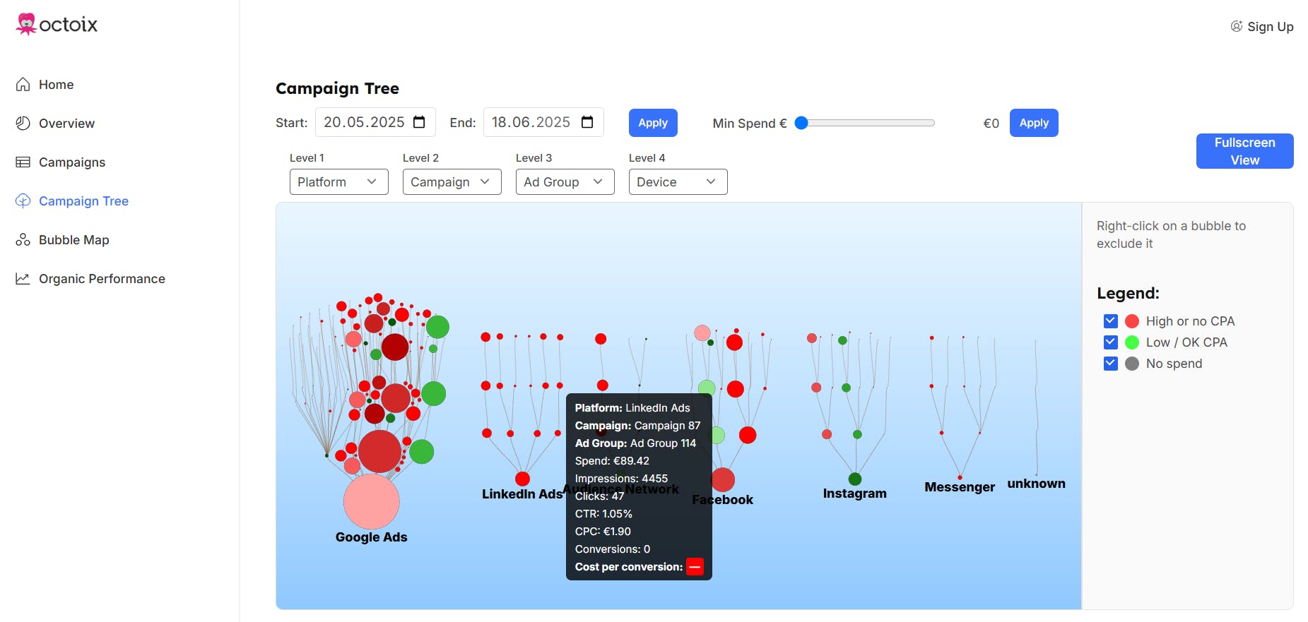 Octoix now shows your ad performance in a clean, interactive hierarchy.