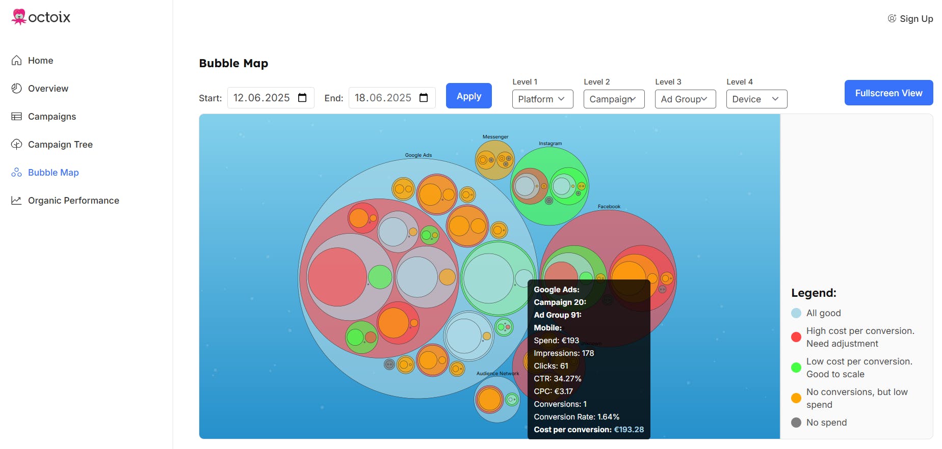 Octoix now shows your ad performance in a clean, interactive hierarchy.