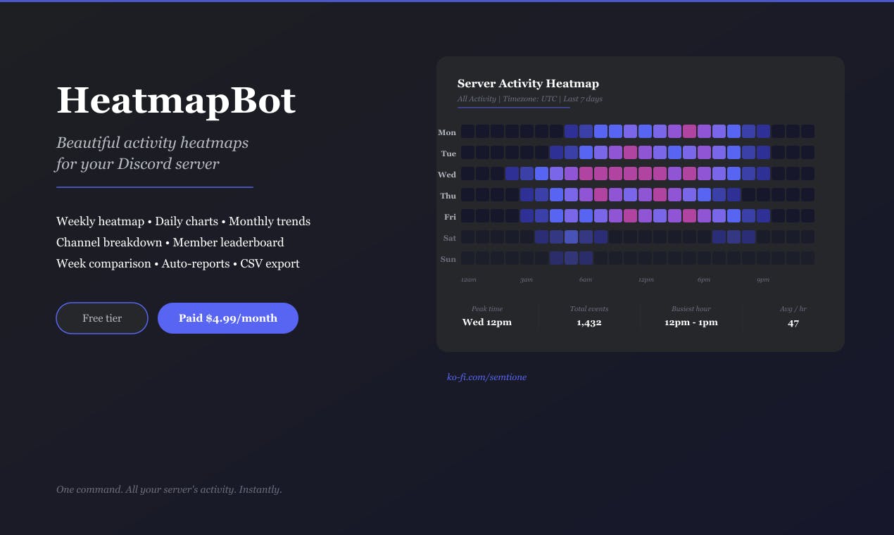 I built Heatmap Bot because I kept posting in my Discord server at the wrong time and getting zero engagement.